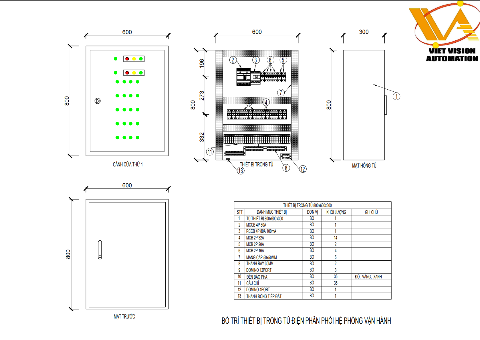 Vỏ tủ điện được chế tạo từ tôn dày 1.5mm có khóa bảo vệ, 2 lớp cánh. Các thành phần có thể tháo lắp dễ dàng, thuận tiện