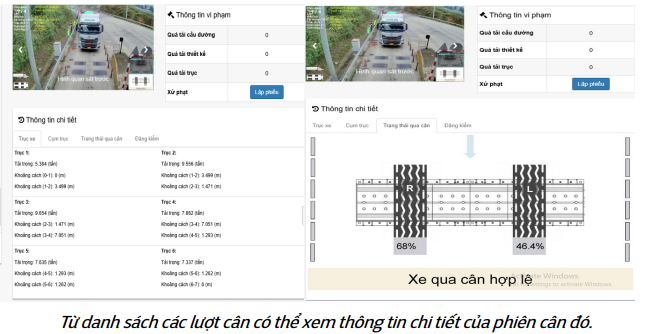 sửa lại lại theo hình ảnh và video xe đi qua cân đối với xe quá tải; •